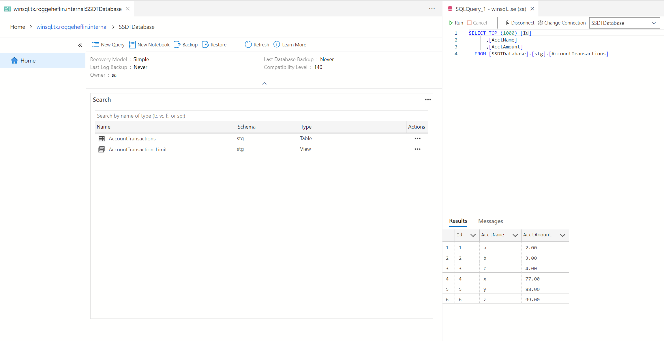 - Verify the database, objects, and data in a query tool of your choice. I am using Azure Data Studio in this example.